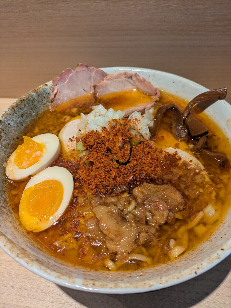 小伝馬町 たた味。注文が謎のQRコード事前決済読み取らせ食券発行になっていて、分かる人には便利だけど難しいって思う人いそうだな。でもまあそれはそれとして、久々に来訪して、夏っぽいメニューを頼みましたがまあこの振り切った感じの唯一無二って感じはいいですね。お店の人の雰囲気もこんな乱暴なラーメン作る感じじゃない優しさに溢れていていい店ですね。