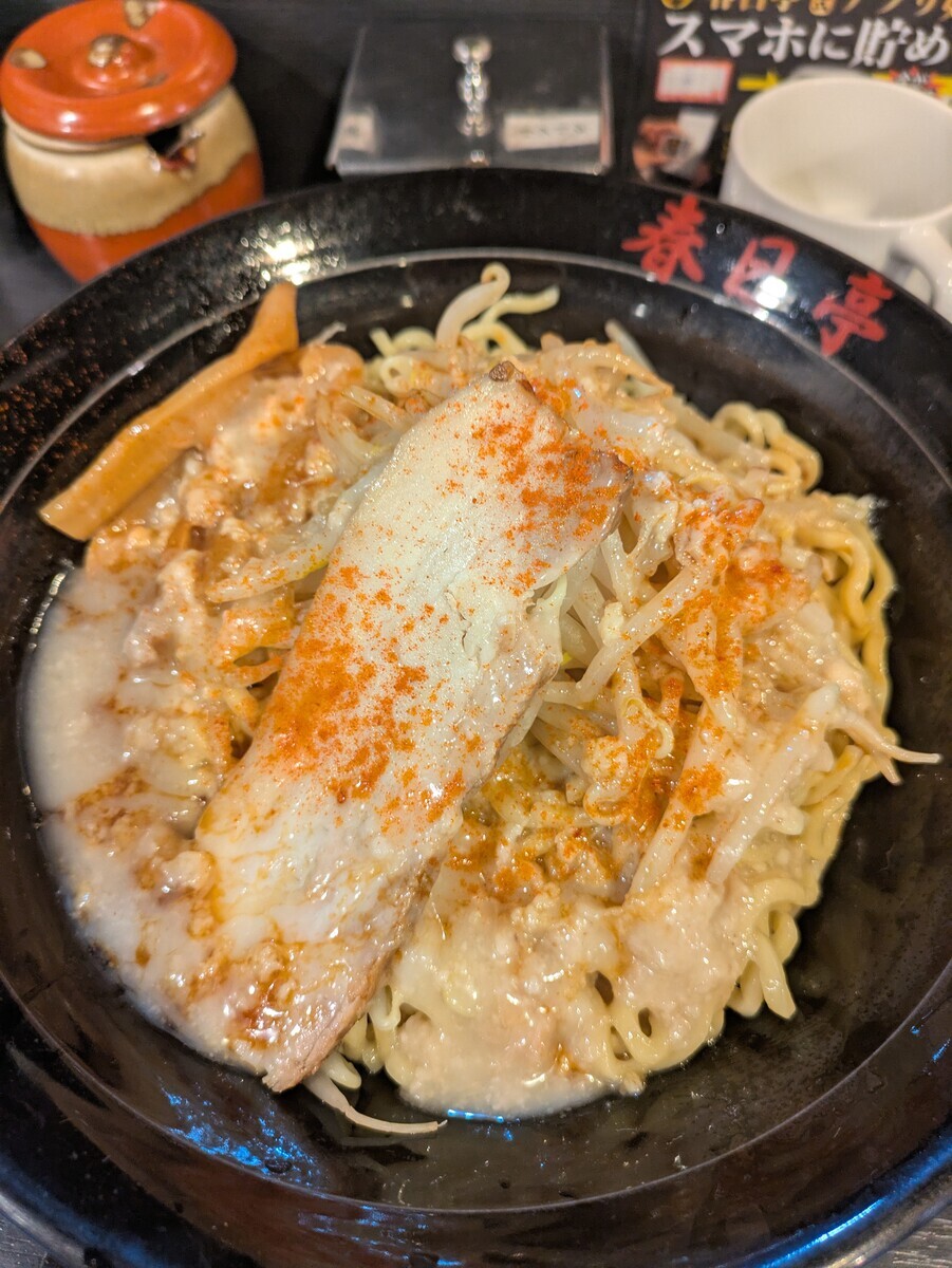 新所沢 自家製麺まさき(非乳化)。いろんな二郎系に失望してきたけど、最後の砦感があって訪問したここ、とてもよかった。麺は柔らかめというわけではないけど、しっかり茹だっていてデロでもワシでもないブリブリ感があって、それでいて中まで熱々に仕上げられていた。これよこれ。これがいいのよ。無料のオプションしか頼まなかったけど豚とかも含めて色々考えてもいいな。場所的には遠いけど都心の店に行くことを考えるとあんまり変わらない(ただし食い終わったあと帰るしかないw)。